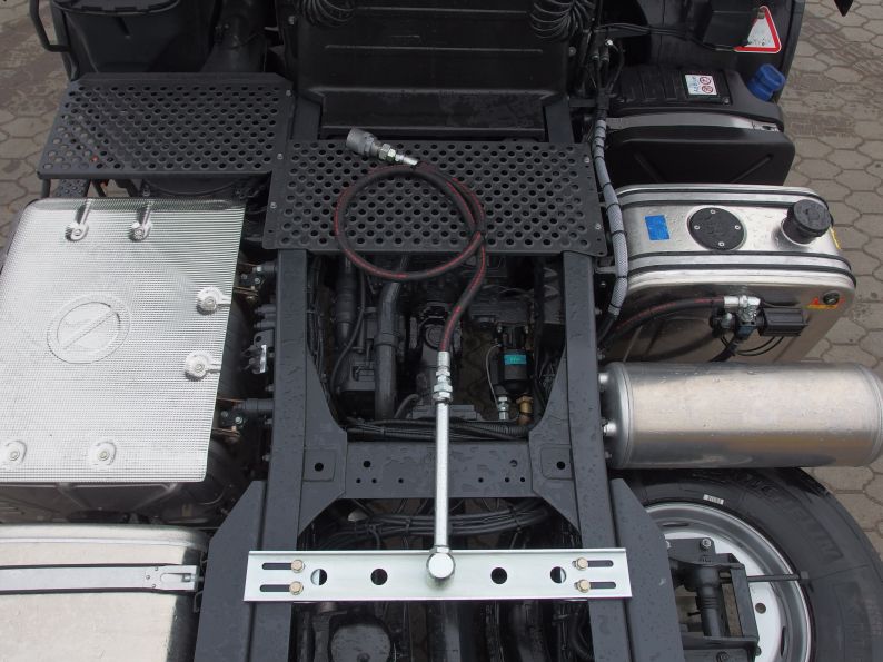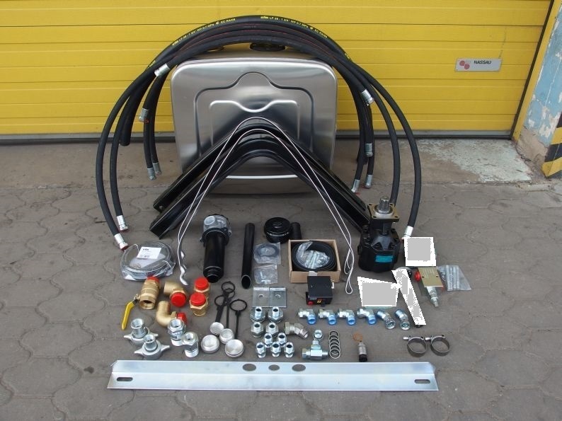 použitá jedno okruhová hydraulika zn. Brueninghaus Hydromatik, čerpadlo, hadice, nádrž umiestnená za kabínou ťahača